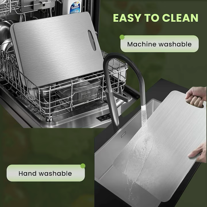 Fabricate din oțel inoxidabil de calitate, tocătoarele sunt rezistente la rugină, mirosuri și pete. Nu absorb lichide și nu rețin bacterii, oferind o suprafață sigură pentru prepararea alimentelor.